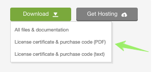 - Click ‘License certificate & purchase code’ (available as PDF or text file).
