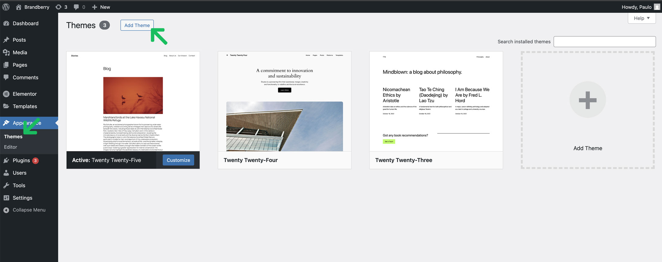 Click Choose File and select thebrandberry.zipfile from your computer. - Install the Theme