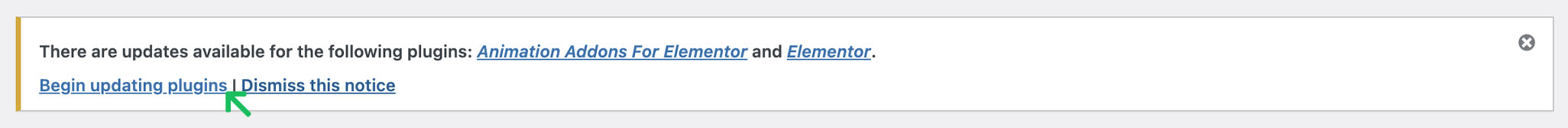The Animation Addons PRO plugin is updated separately from the default WordPress plugin update system. When a new version is available (usually released alongside a theme update), a notification will appear at the top of your WordPress dashboard.