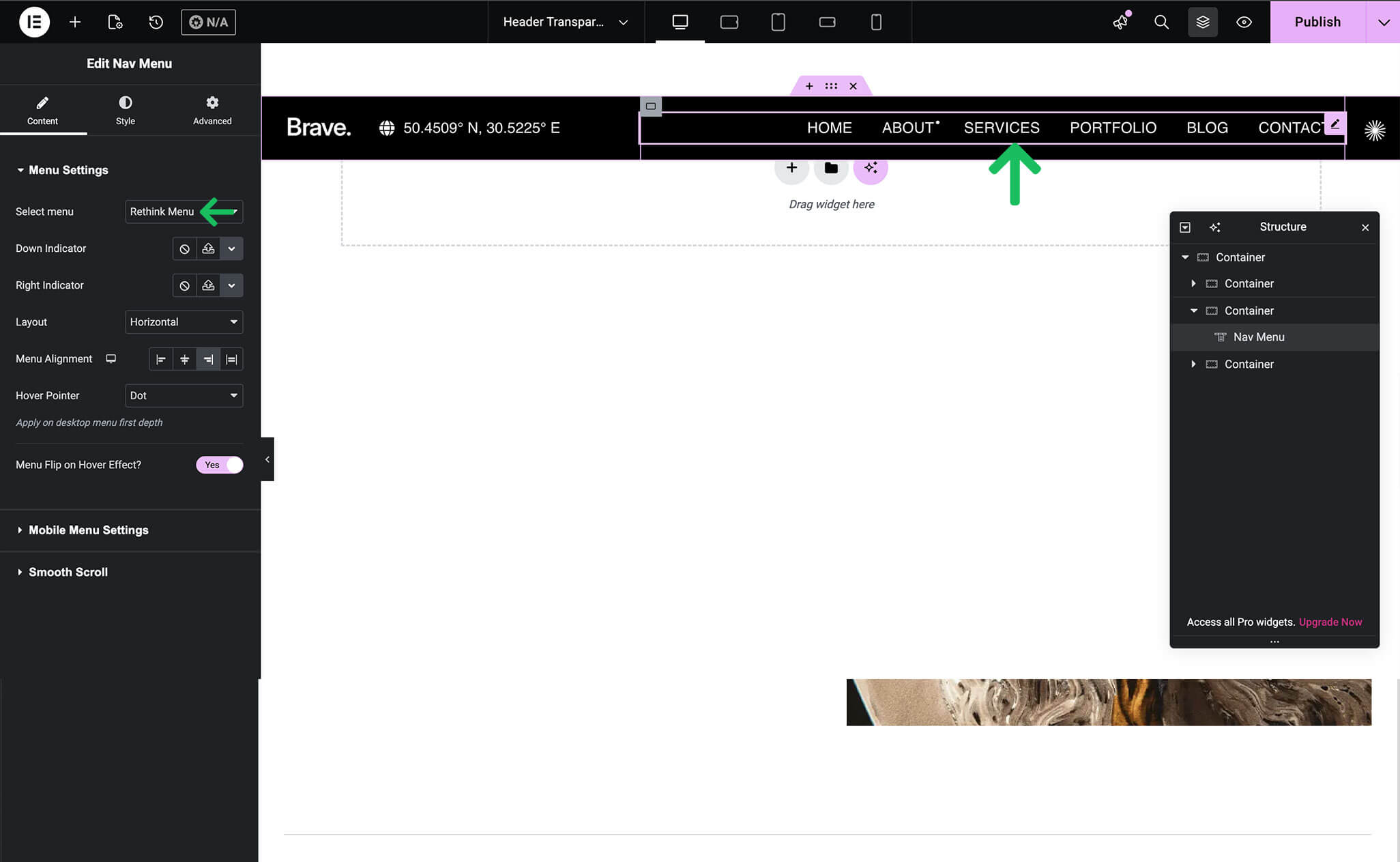 Using Menus with Elementor