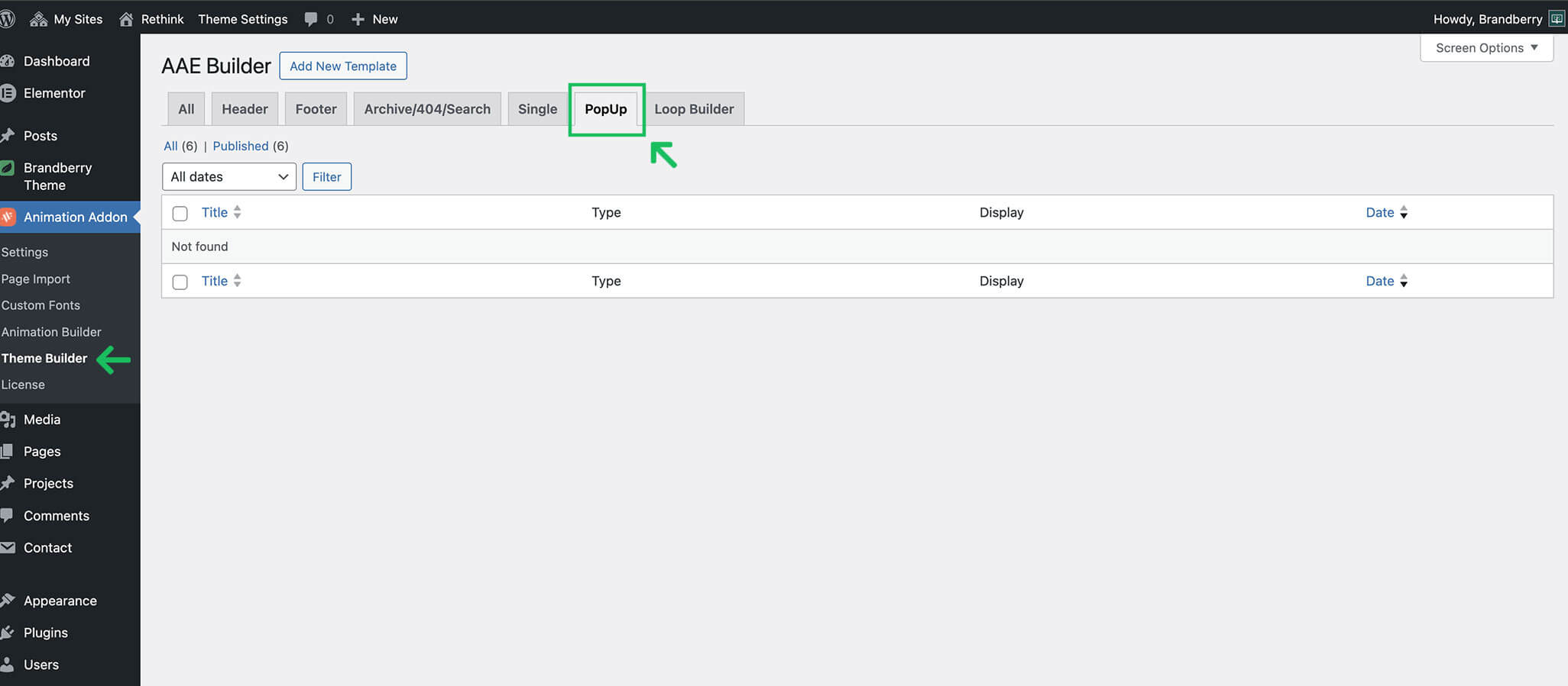 The Popup Theme Builder in Brandberry allows you to create reusable popup templates using Elementor. Popups can be used for announcements, promotions, contact forms, navigation panels, or any content you want to display on top of the current page.