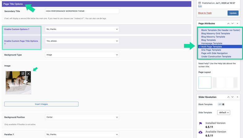 - Now over the page you've created, just scroll a bit down to the end of the page, and go to Blog Style and set your options relative to the Blog Masonry Template.