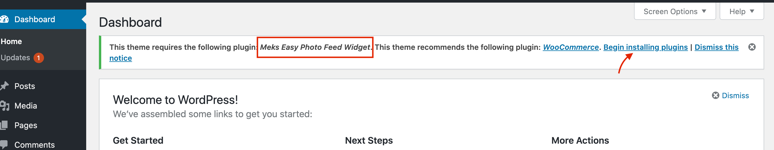 - First install the plugin Meks Easy Instagram Widget, trough the notice