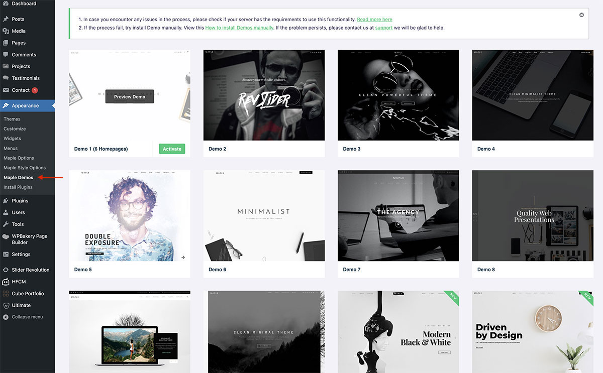 - Go to menu Appearance -> Maple Options -> Save Changes (Green Button at the top right corner)