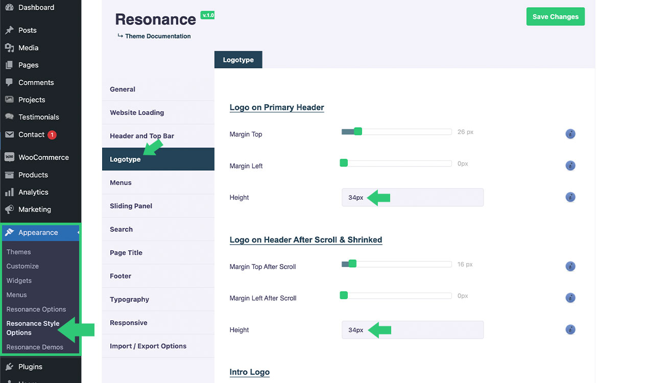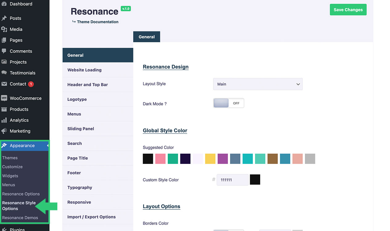 Resonance Options panel is meant for the empowering of your theme with some visual enhancements described below.